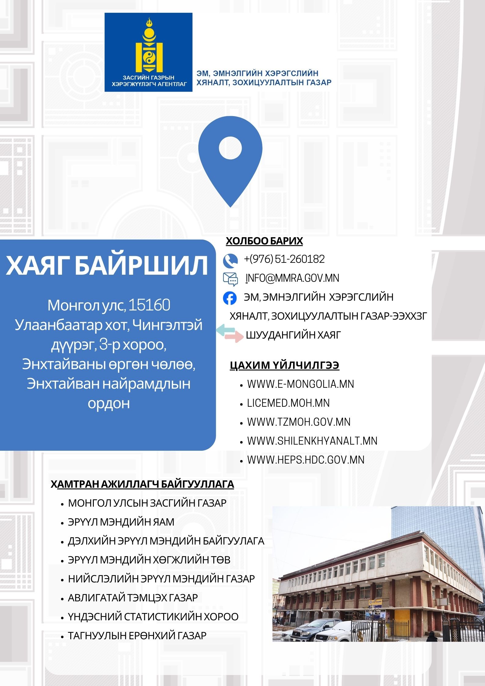 Хариуцах албан хаагч:Агентлаг, хяналтын лабораторийн хүний нөөцийн асуудал ахлах мэргэжилтэн Э.Нандин-ЭрдэнэУтас: 91 91 2925 ...