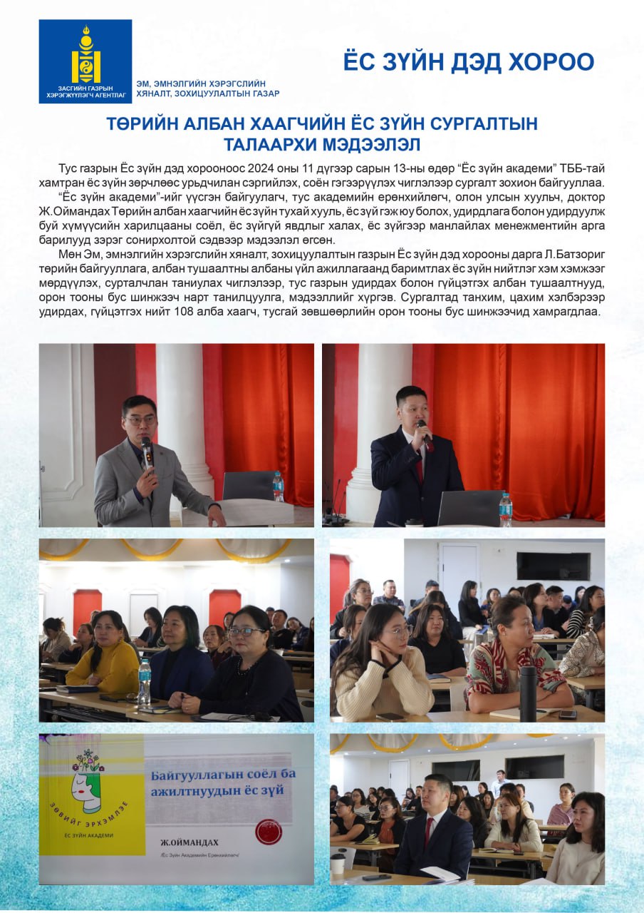 Хариуцах албан хаагч: Бичиг хэргийн мэргэжилтэн О.Хулан Утас: 99 95 7830 ...
