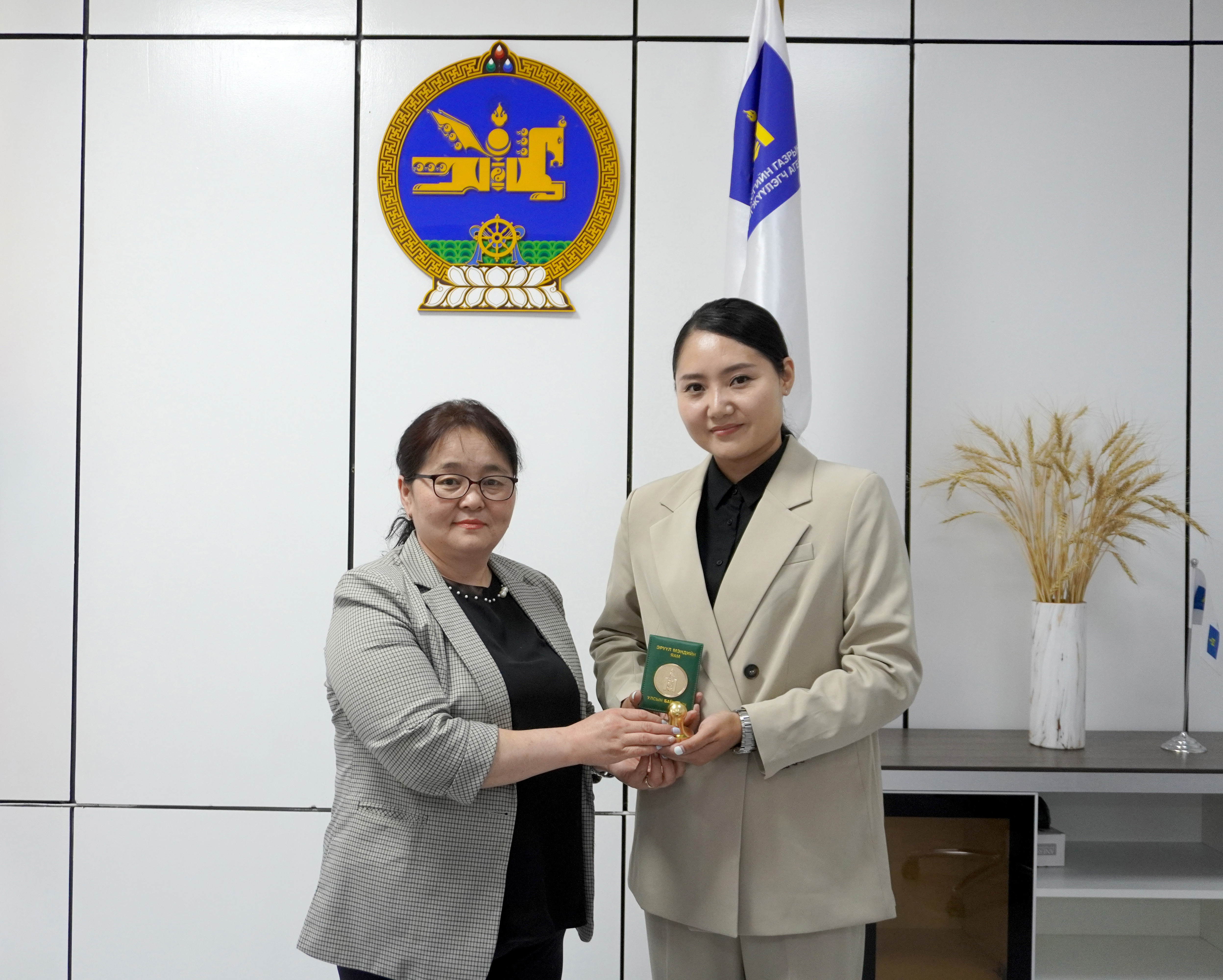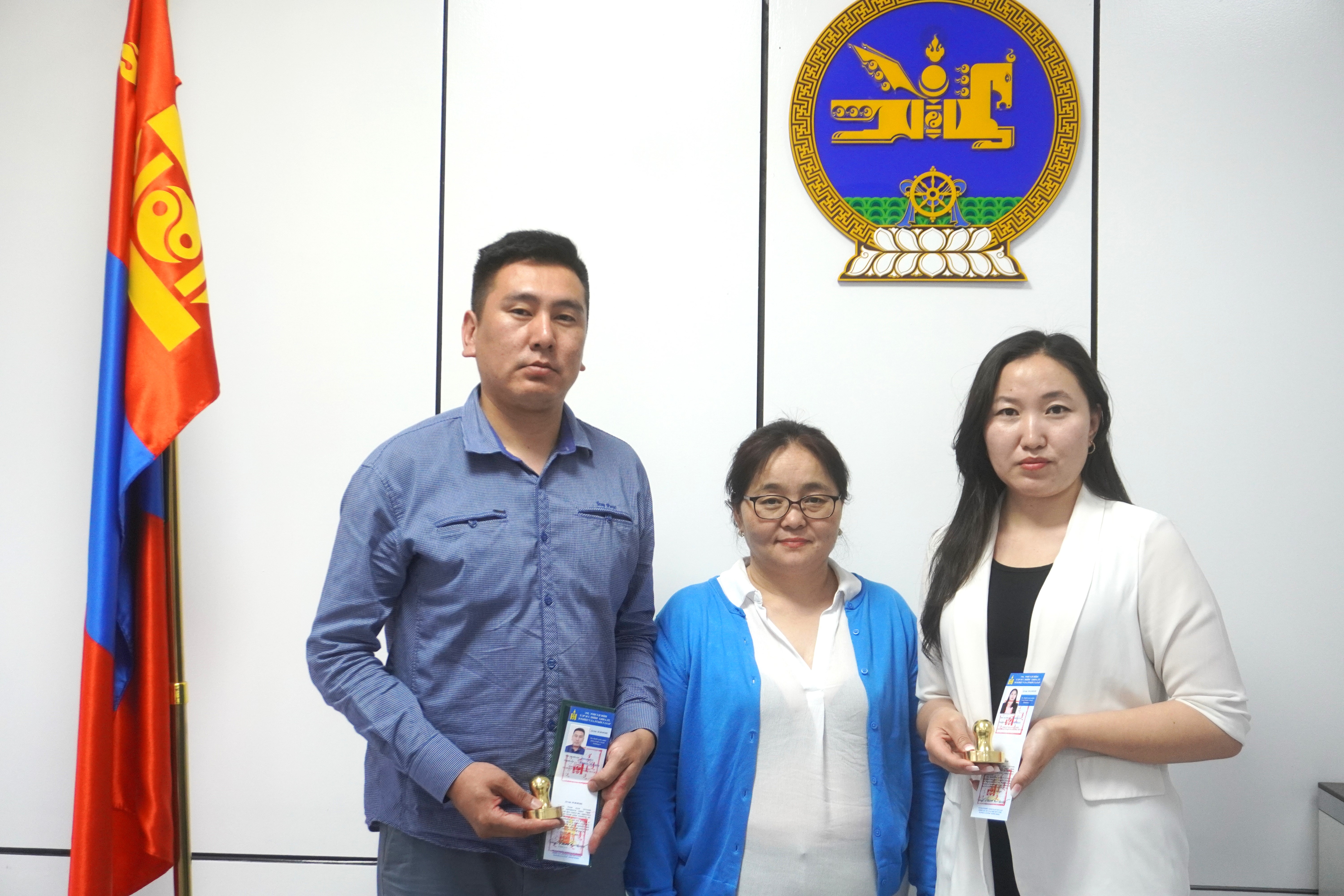 Эм, эмнэлгийн хэрэгслийн хяналт, зохицуулалтын газрын даргын албан үүргийг түр орлон гүйцэтгэгч Ш.Энхтуяа тус газрын шинэхэн улсын байцаагчдад ЭМС-ын тушаалаар олгогдсон улсын байцаагчийн үнэмлэх, тэмдгийг гар ...