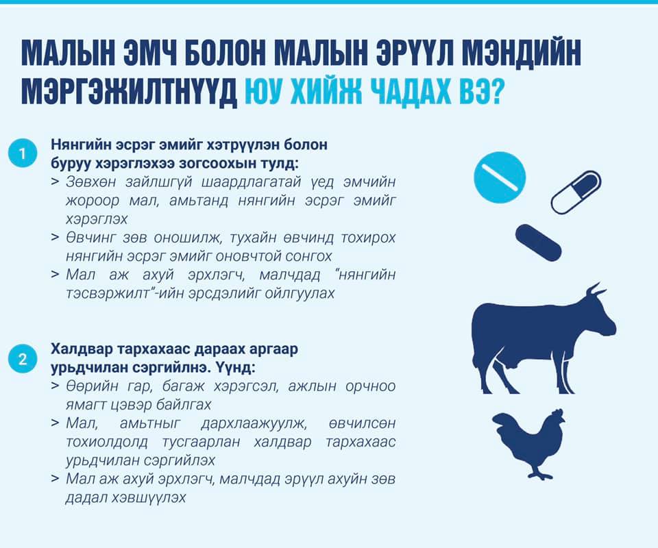 ❗️Хүн, малд хамгийн өргөн хэрэглэдэг бичил биетний эсрэг эм нь нянгийн эсрэг эм (антибиотик) юм. Антибиотикийг хэтрүүлэн болон буруу хэрэглэж байгаа нь нянгийн тэсвэржилт үүсэх явцыг улам хурдасгаж, бид бүгдийг эрсдэлд оруулж байна.