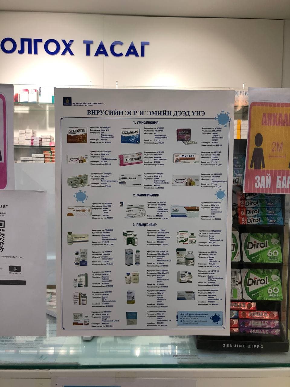 ЭЭХХЗГ-аас коронавирусийн эмчилгээнд хэрэглэж буй вирусийн эсрэг эмүүдийг худалдаалах үнийн дээд хязгаарыг тус бүрийн үйлдвэрлэгчийн үнэ, гаалийн болон бусад татварууд, тээвэр, ложистикийн зардлууд зэргийг тооцоолон судалж, эм ханган нийлүүлэх байгууллагуудтай зөвшилцөн, нэгдсэн байдлаар тогтоосон. Мөн эм зүйн салбарт үйл ажиллагаа явуулдаг төрийн бус байгууллагууд болон санамж бичиг бүхий эм ханган нийлүүлэх байгууллагуудаар дамжуулан үнийн зохицуулалтын талаарх мэдээлэл, арга зүйн зөвлөмжийг эмийн сангуудад хүргүүлсэн юм. Энэ ажлын хүрээнд өнөөдөр ЭЭХХЗГ-аас нийслэл хотын эмийн сангуудаар худалдаалж буй вирусийн эсрэг эмийн жижиглэнгийн болон бөөний үнийг газар дээр нь шалган, дээд хязгаараас давсан тохиолдолд тухай бүрт нь шийдвэрлэж, холбогдох чиглэлүүдийг өглөө. Цар тахлын үед нийгмийн хариуцлагын хүрээнд хамтран ажиллаж буй аж ахуйн нэгжүүдэд талархал илэрхийлье.