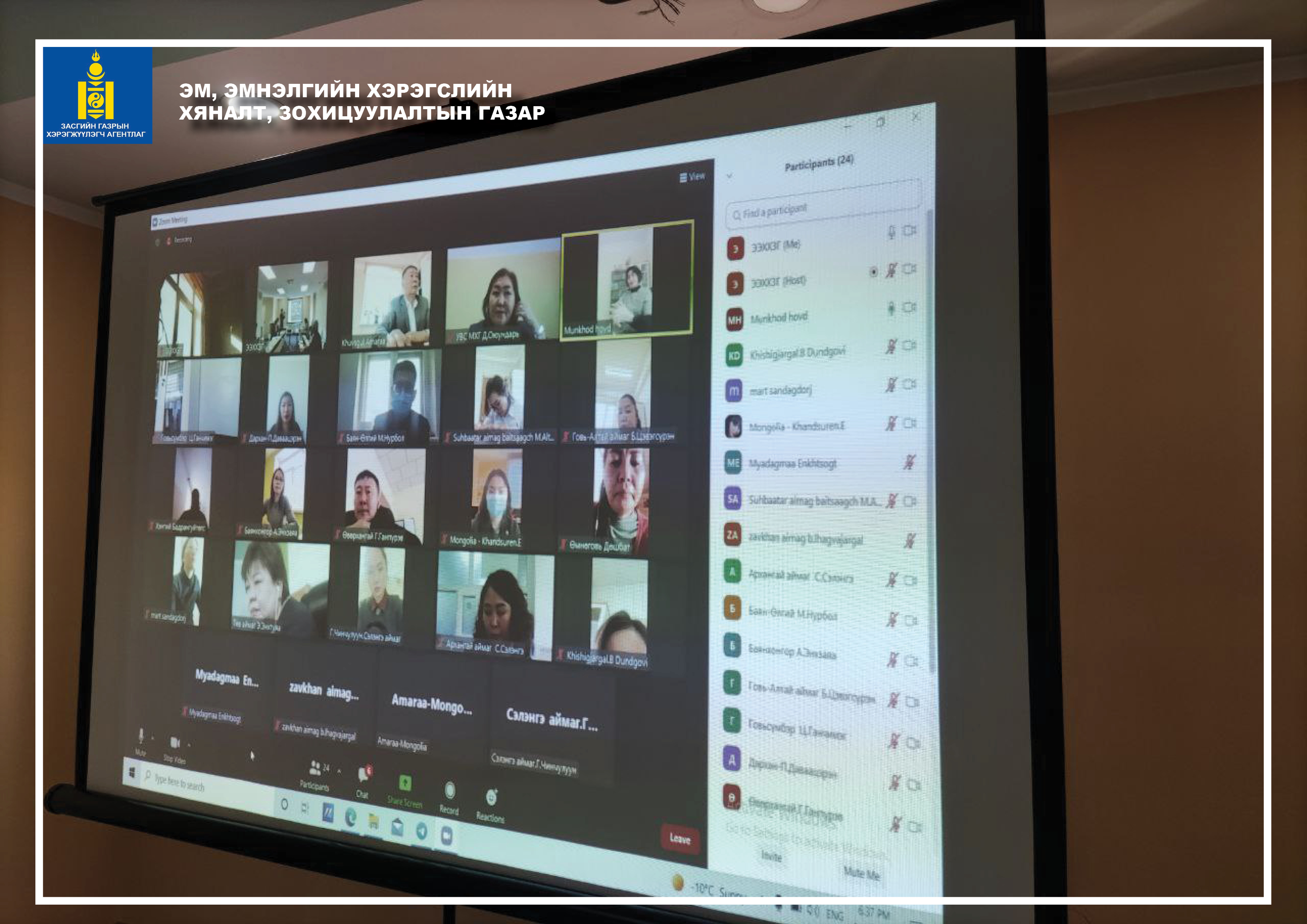 ЭЭХХЗГ-ын Чанарын хяналтын газрын төв болон орон нутгийн улсын байцаагчид Азийн хөгжлийн банктай хамтран, хяналт шалгалтад ашиглагдах хяналтын хуудсыг эцэслэн, батлуулах ээлжит хэлэлцүүлгийг 2022 оны 3 дугаар сарын 22-ны өдөр цахимаар зохион байгууллаа.