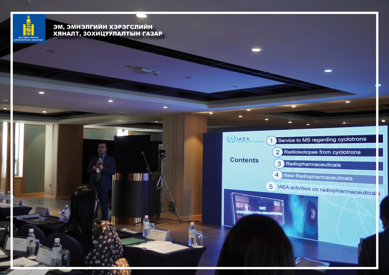 “GMP шаардлагад нийцэх Цацраг идэвхт эмийн үйлдвэрлэлийн эрх зүйн байдал” сэдэвт уулзалт болж байна.
