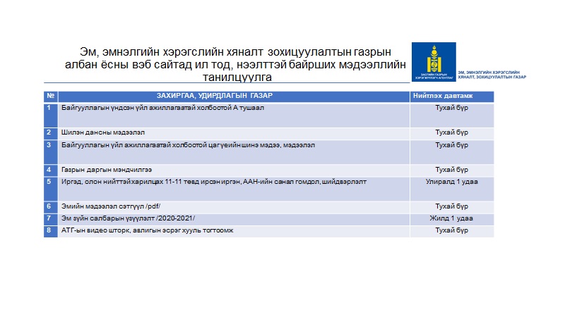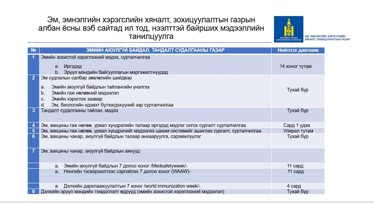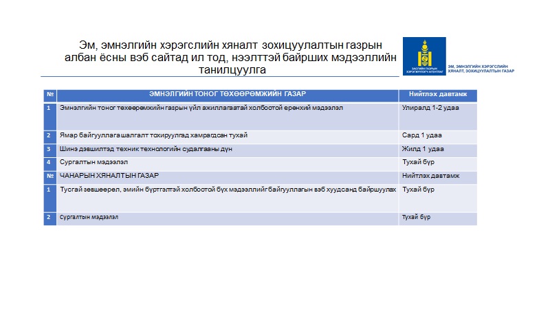 Эм зүйн салбарын мэдээлэл