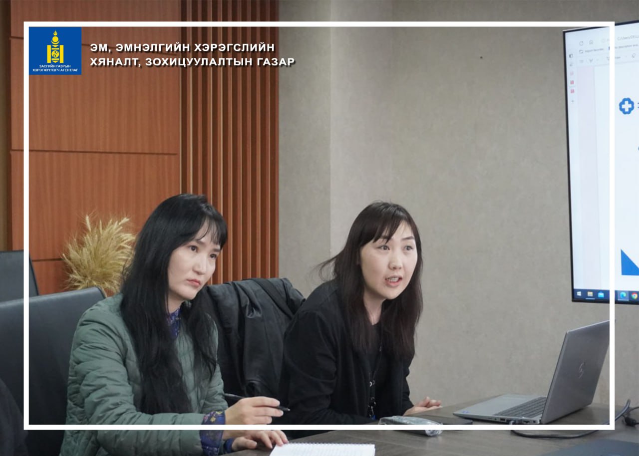 Эрүүл мэндийн салбарын тогтолцоог сайжруулахын тулд E-Health цахим системийг нэвтрүүлэх ажил өрнөж байна. Эм, эмнэлгийн хэрэгслийн хяналт, зохицуулалтын газрын мэдээлэл технологи, дотоод сүлжээний асуудал хариуцсан мэргэжилтнүүд, Эмийн аюулгүй байдлын тандалт судалгааны газар, Эм хангамжийн газрын албан хаагчид “E-Health” цахим эрүүл мэнд программын хөгжүүлэгч нартай санал солилцож, дараах асуудлуудыг хэлэлцлээ. Үүнд эмийн жорыг цахимжуулах, эмийн бүртгэлийн мэдээллийг солилцох, эрүүл мэндийн байгууллагуудаас авдаг эмийн нөөцийн болон эмэн эмчилгээний хорооны тайлан, мэдээллийг тус программд оруулахаар хэлэлцсэн юм.