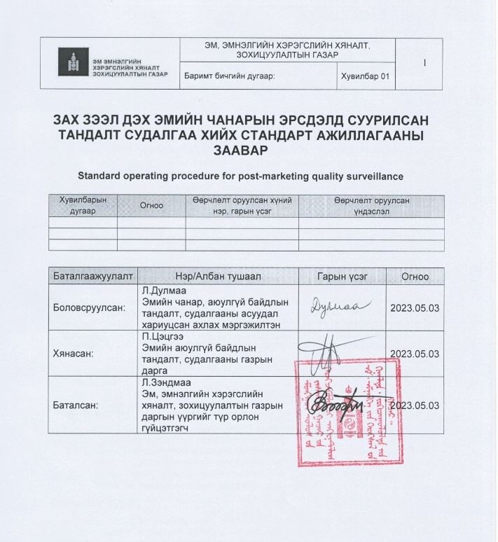 Эмийн аюулгүй байдлын тандалт судалгааны газраас үйл ажиллагаандаа ашиглах Стандарт ажиллагааны заавруудыг олон улсын удирдамжид үндэслэн боловсруулж гаргалаа.