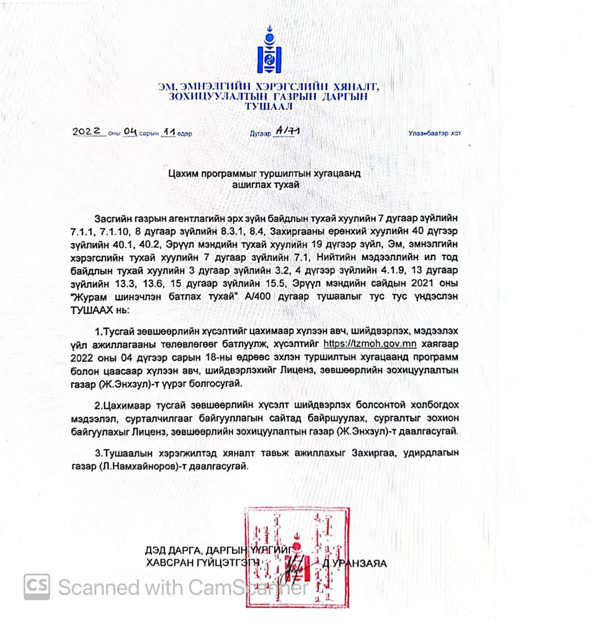 Эм, эмнэлгийн хэрэгслийн хяналт, зохицуулалтын газар “Зөвшөөрлийн зөвлөл”-ийн тогтоолыг биелүүлж, хуулиар зохицуулагдах харилцааг зохицуулсан журмуудаа цуцаллаа.