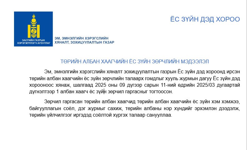 Төрийн албан хаагчийн ёс зүйн зөрчлийн мэдээлэл